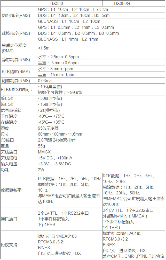 接口协议:标准/扩展NMEA-0183、RTCM3.0/3.2、BINEX、自定义二进制协议等。
