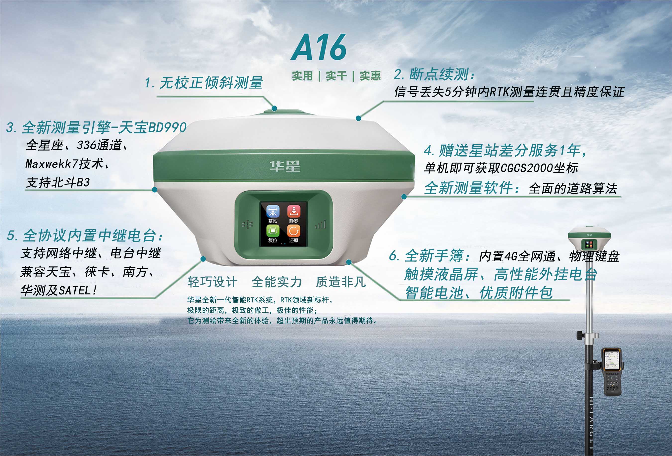 A16是华星品牌新一款高端GNSS接收机,新一代火博HUOBO(中国)引擎,支持星站差分,内置4G全网通通讯和多协议电台,采用全新外观设计,镁合金结构,Linux3.2.0操作系统,内置高清OLED显示和电容式触摸屏,是一款极致、智能、轻巧的火博HUOBO(中国)型GNSS接收机。