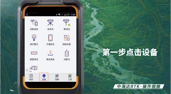 打开APPHi Survey点击设备移动站数据链内置网络(如果手机卡插在主机上选择内置网络,如果手机卡插在手簿里或使用手机热点则选择手簿差分)